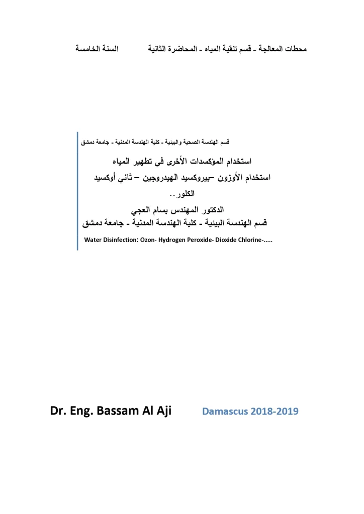 استخدام المؤكسدات الأخرى في تطهير المياه – جامعة دمشق
