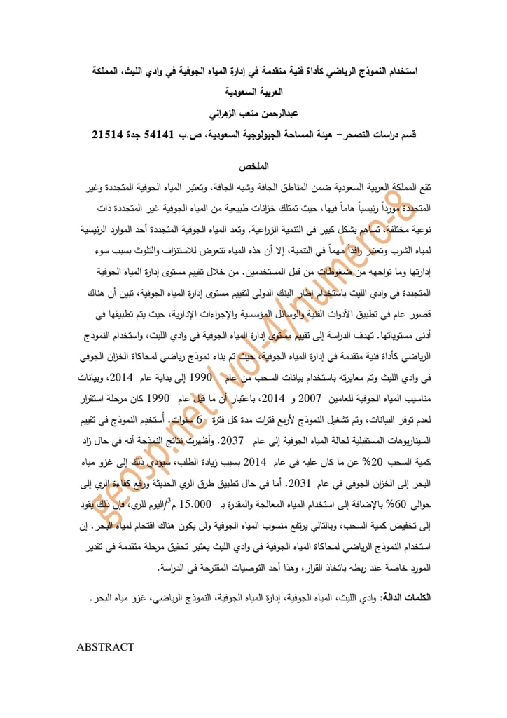 استخدام النموذج الرياضي كأداة فنية متقدمة في إدارة المياه الجوفية