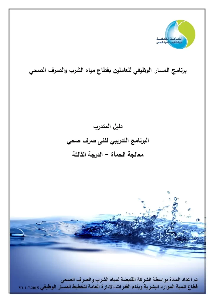 البرنامج التدريبي لفنى صرف صحي معالجة الحمأة – الدرجة الثالثة