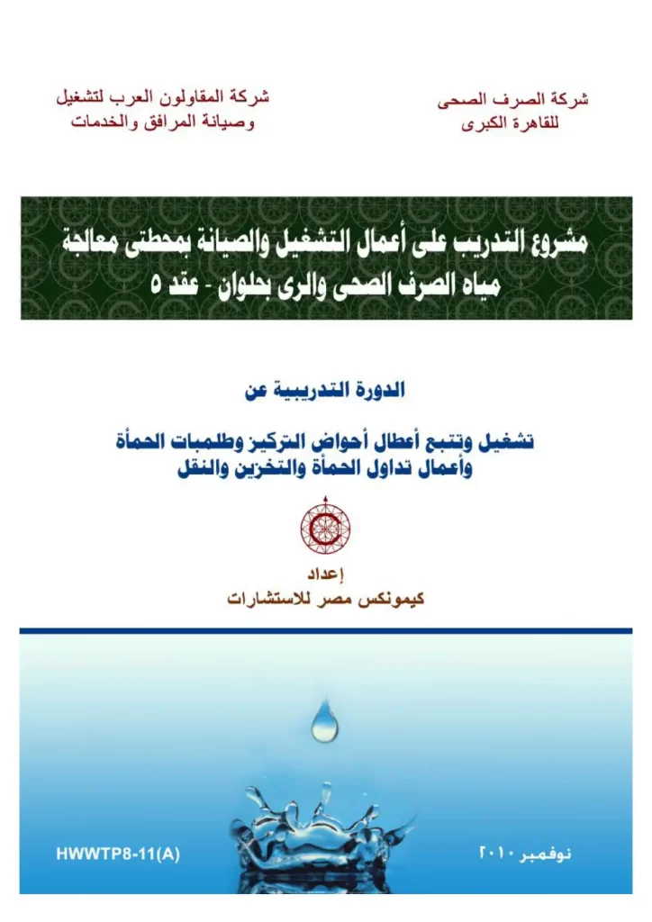 الدورة التدريبية عن تشغيل وتتبع أعطال أحواض التركيز وطلمبات الحمأة وأعمال تداول الحمأة والتخزين والنقل