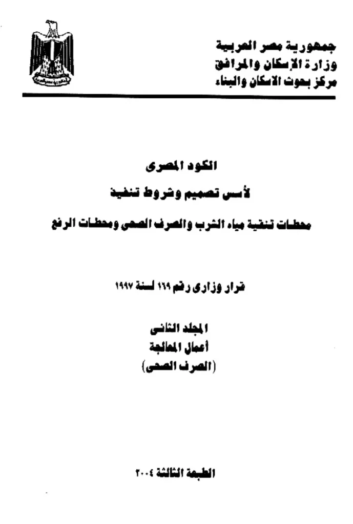 الكود المصري لأسس تصميم وشروط تنفيذ محطات تنقية مياه الشرب والصرف الصحي ومحطات الرفع (المجلد الثاني – أعمال المعالجة (الصرف الصحي)))