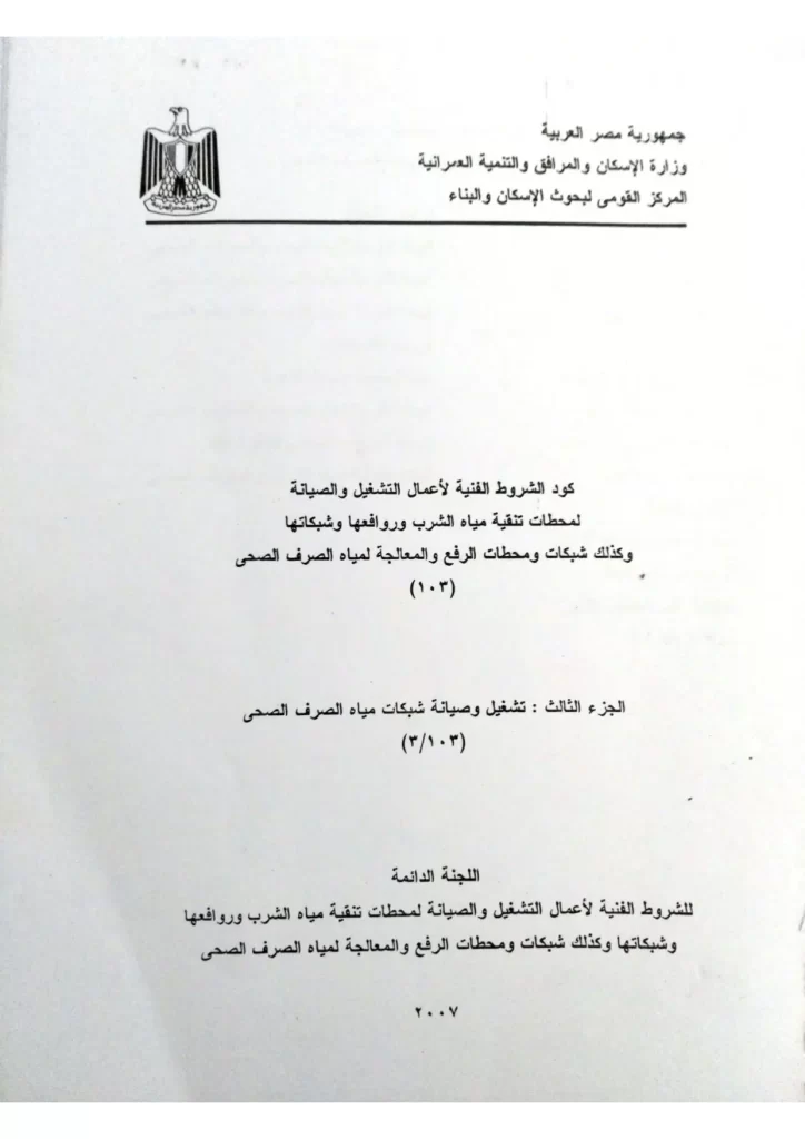 الكود المصري لتشغيل وصيانة شبكات الصرف الصحي