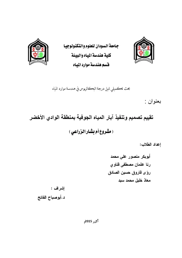 تقییم تصمیم وتنفیذ آبار المیاه الجوفیة بمنطقة الوادي الأخضر