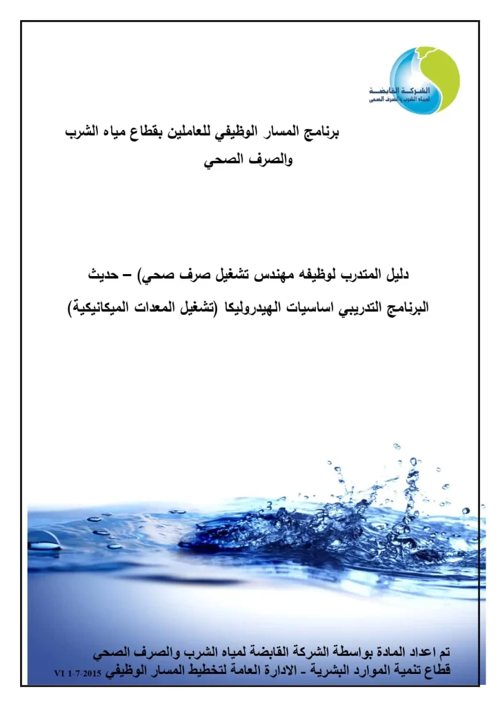 دليل المتدرب لوظيفة مهندس تشغيل الصرف الصحي – برنامج تدريب أساسيات الهيدروليكا الحديثة (المعدات الميكانيكية)