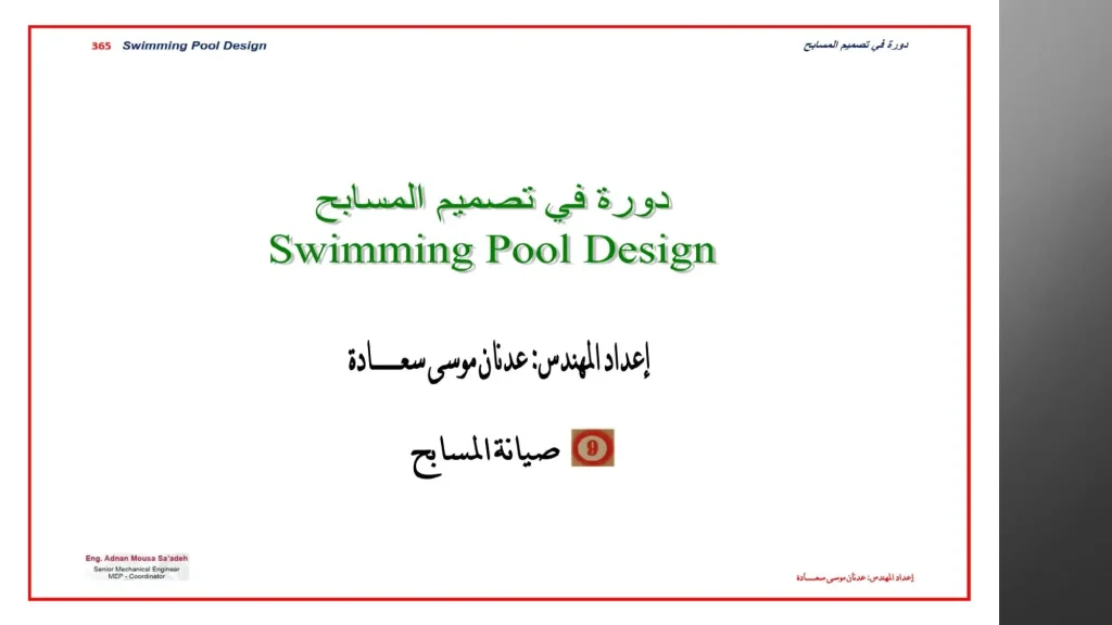 صيانة المسابح Swimming Pool Design دورة في تصميم المسابح