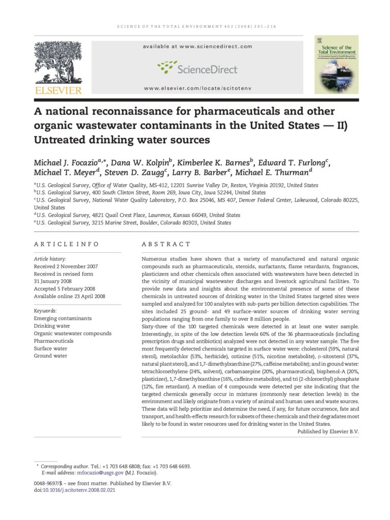 A National Reconnaissance For Pharmaceuticals And Other Organic Wastewater Contaminants In The United States — II) Untreated Drinking Water Sources