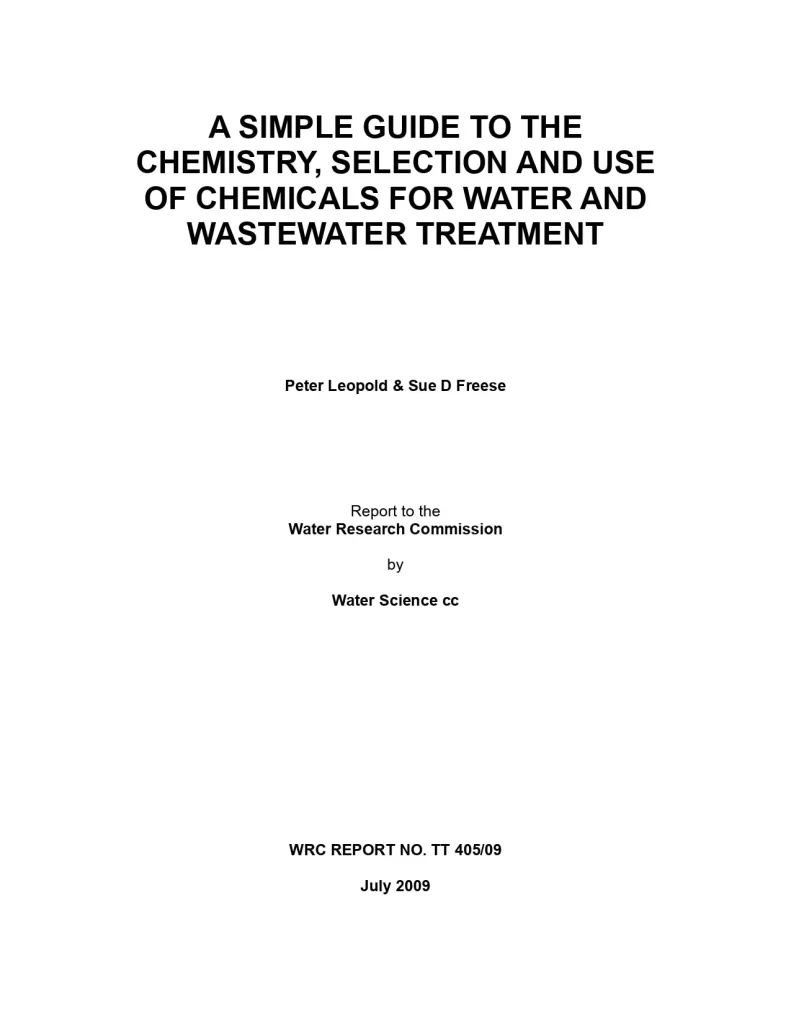 A SIMPLE GUIDE TO THE CHEMISTRY, SELECTION AND USE OF CHEMICALS FOR WATER AND WASTEWATER TREATMENT