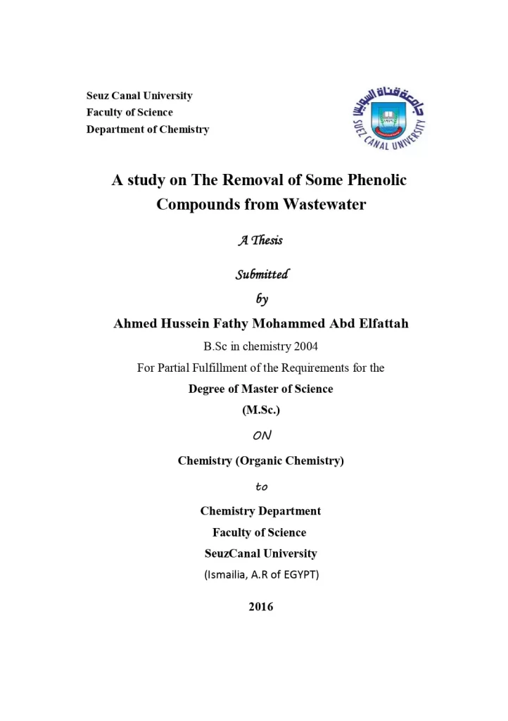 A study on The Removal of Some Phenolic Compounds from Wastewater