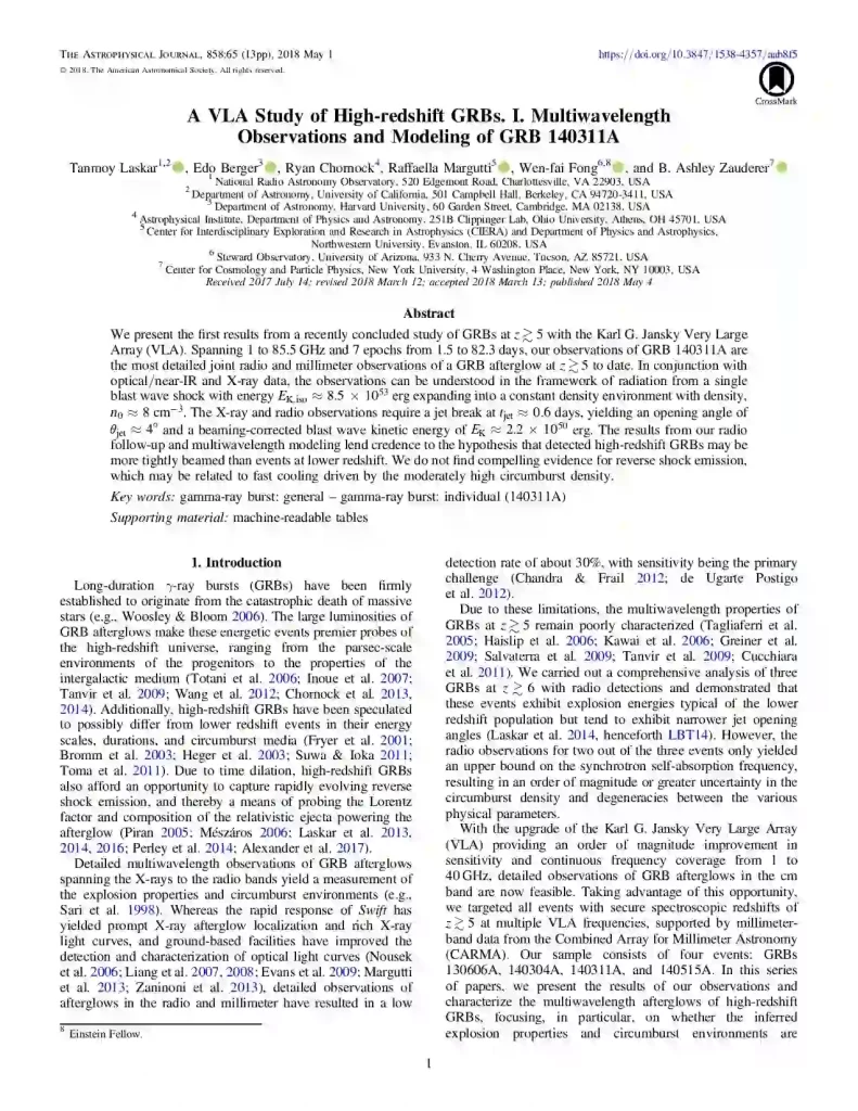 A VLA Study of High-redshift GRBs. I. Multiwavelength Observations and Modeling of GRB