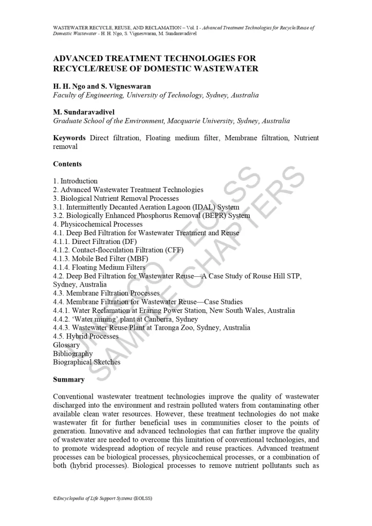 Authors : H. H. Ngo and S. Vigneswaran, M. Sundaravadivel