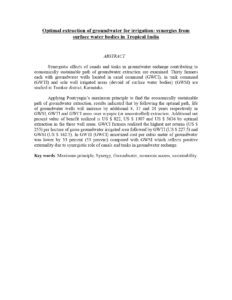 Optimal Extraction Of Groundwater For Irrigation Synergies From Surface Water Bodies In Tropical India 2 0