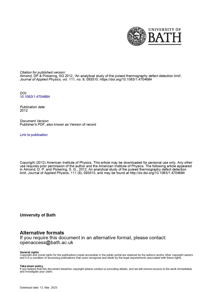 An Analytical Study of the Pulsed Thermography Defect Detection Limit