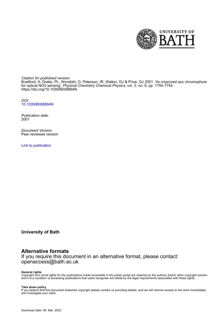 An Improved Azo Chromophore for Optical NO2 Sensing