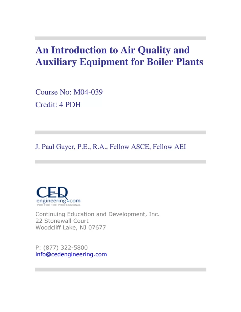 An Introduction to Air Quality and Auxilary Equipment for Boiler Plants