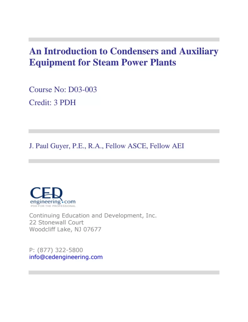 An Introduction to Condensers and Auxilary Equipment for Steam Power Plants
