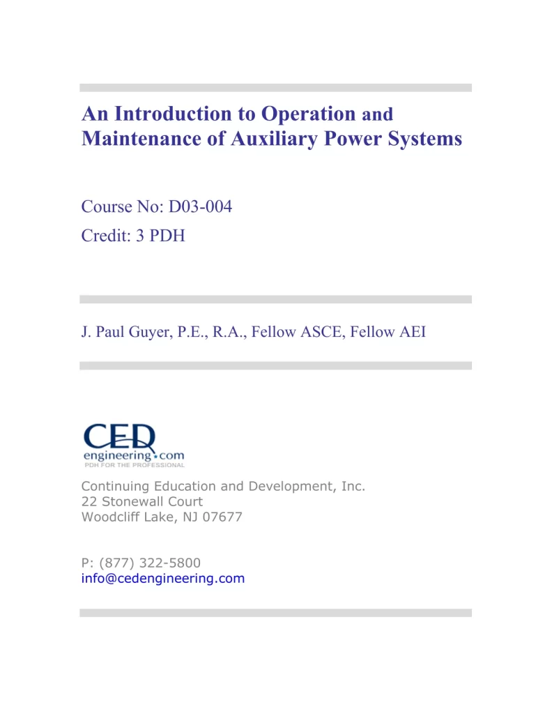 An Introduction to Operation and Maintenance of Auxiliary Power Systems