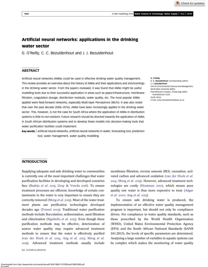 Prepared by: G. O’Reilly, C. C. Bezuidenhout and J. J. Bezuidenhout