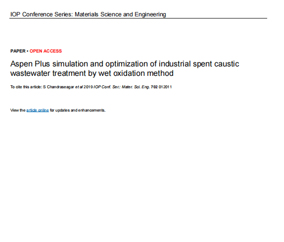 Aspen Plus Simulation And Optimization Of Industrial Spent Caustic Wastewater Treatment By Wet Oxidation Method