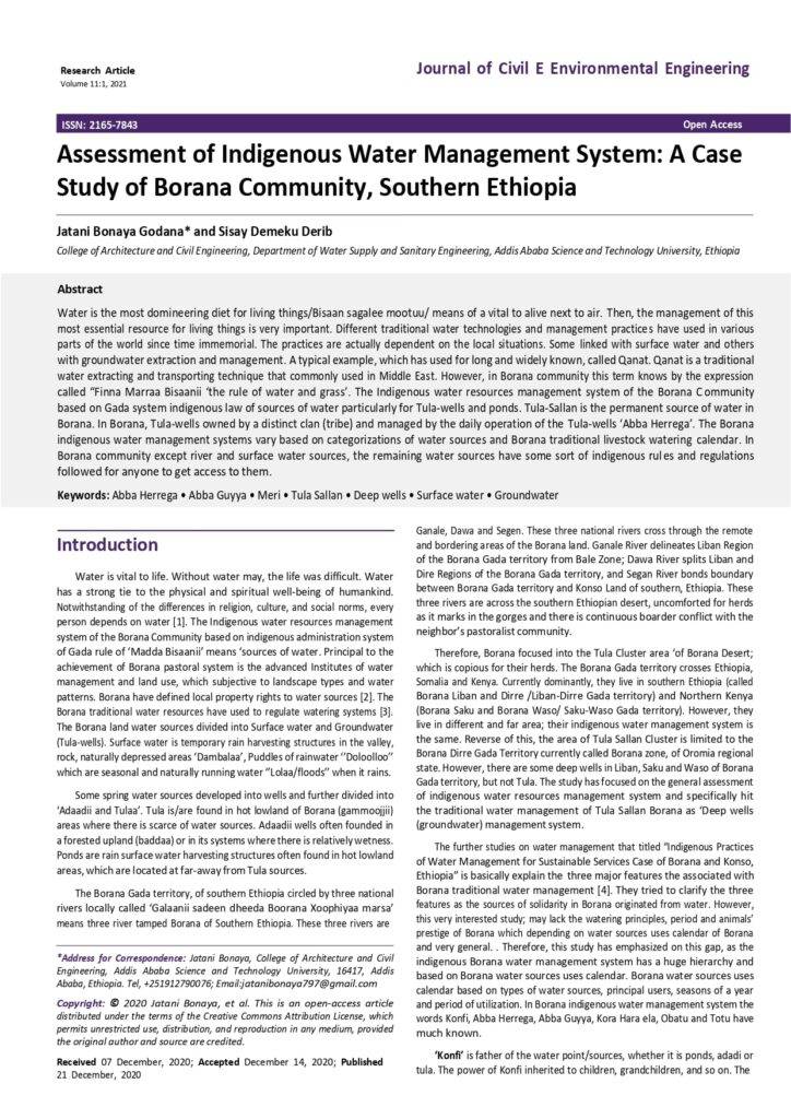 Assessment Of Indigenous Water Management System: A Case Study Of Borana Community, Southern Ethiopia