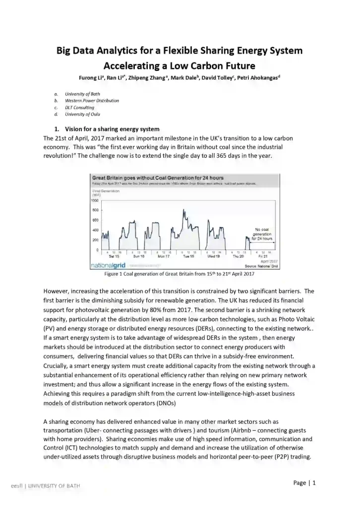 Big Data Analytics for a Flexible Sharing Energy System Accelerating a Low Carbon Future