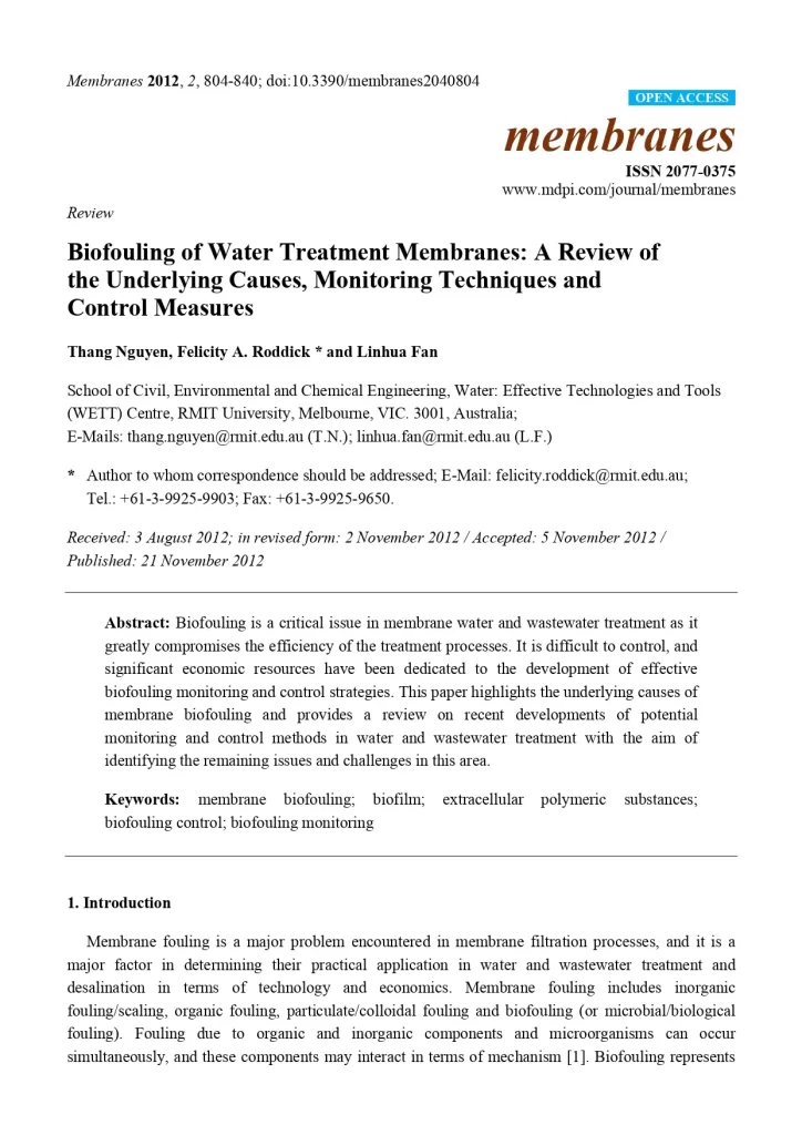 Author : Thang Nguyen, Felicity A. Roddick * and Linhua Fan