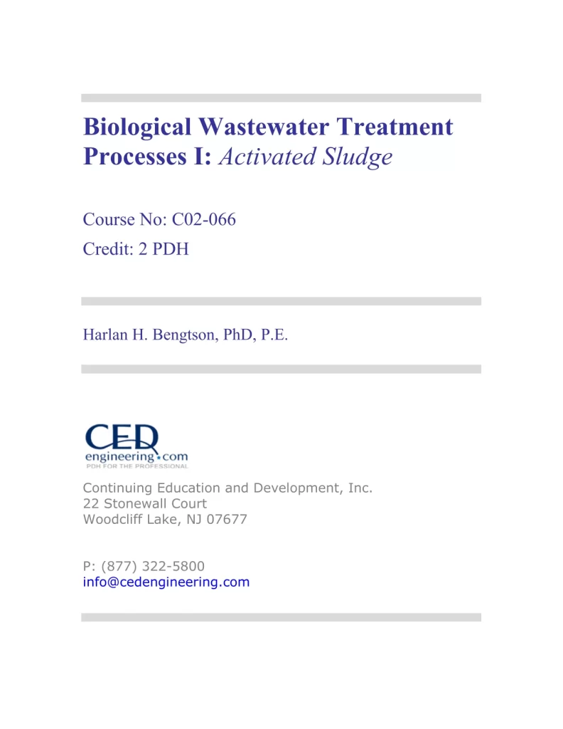 Biological Wastewater Treatment Processes I – Activated Sludge