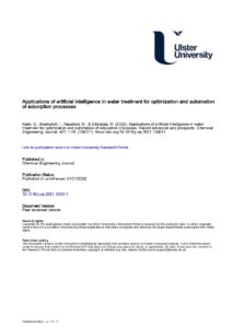 Applications Of Artificial Intelligence In Water Treatment For Optimization And Automation Of Adsorption Processes 2 0