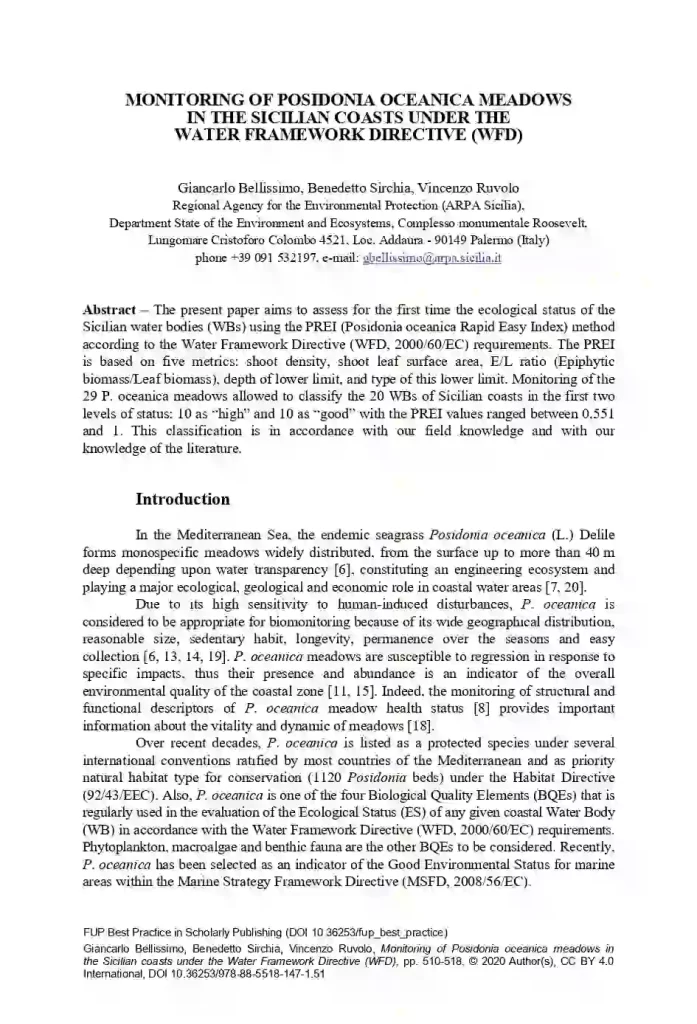 Chapter Monitoring Of Posidonia Oceanica Meadows In The Sicilian Coasts Under The Water Framework Directive (Wfd)