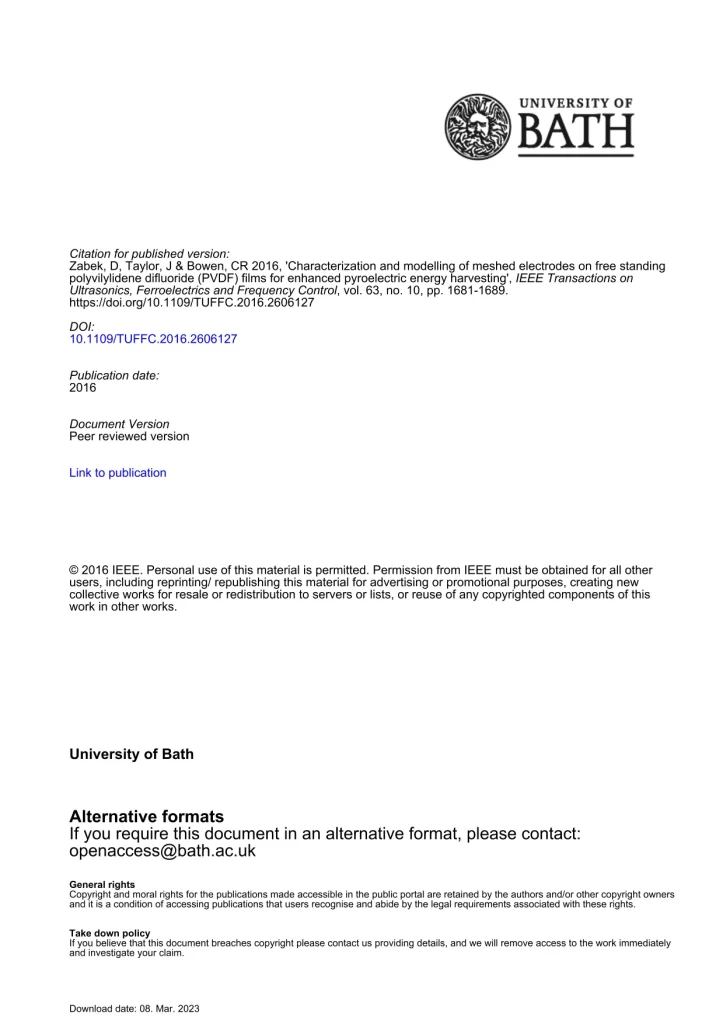 Characterisation And Modelling Of Meshed Electrodes On Free Standing Polyvilylidene Difluoride (PVDF) Films For Enhanced Pyroelectric Energy