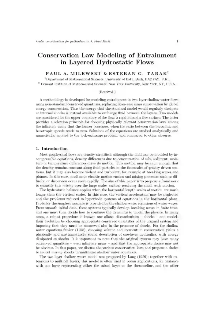 Conservation Law Modeling of Entrainment in Layered Hydrostatic Flows