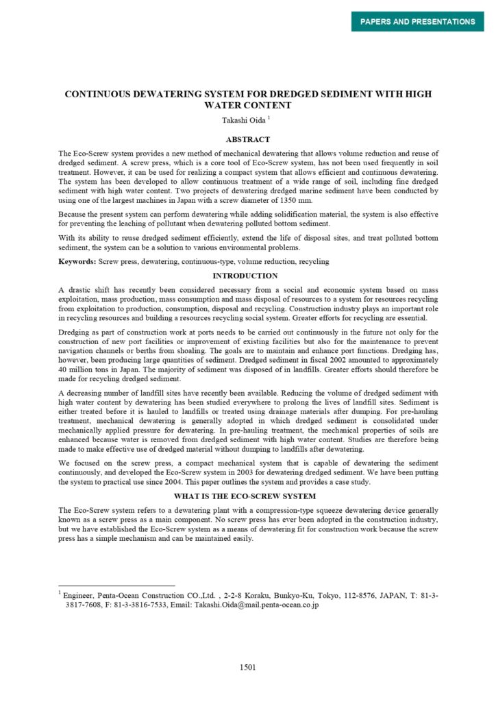 Continous Dewatering System For Dredged Sediment With High Water Content