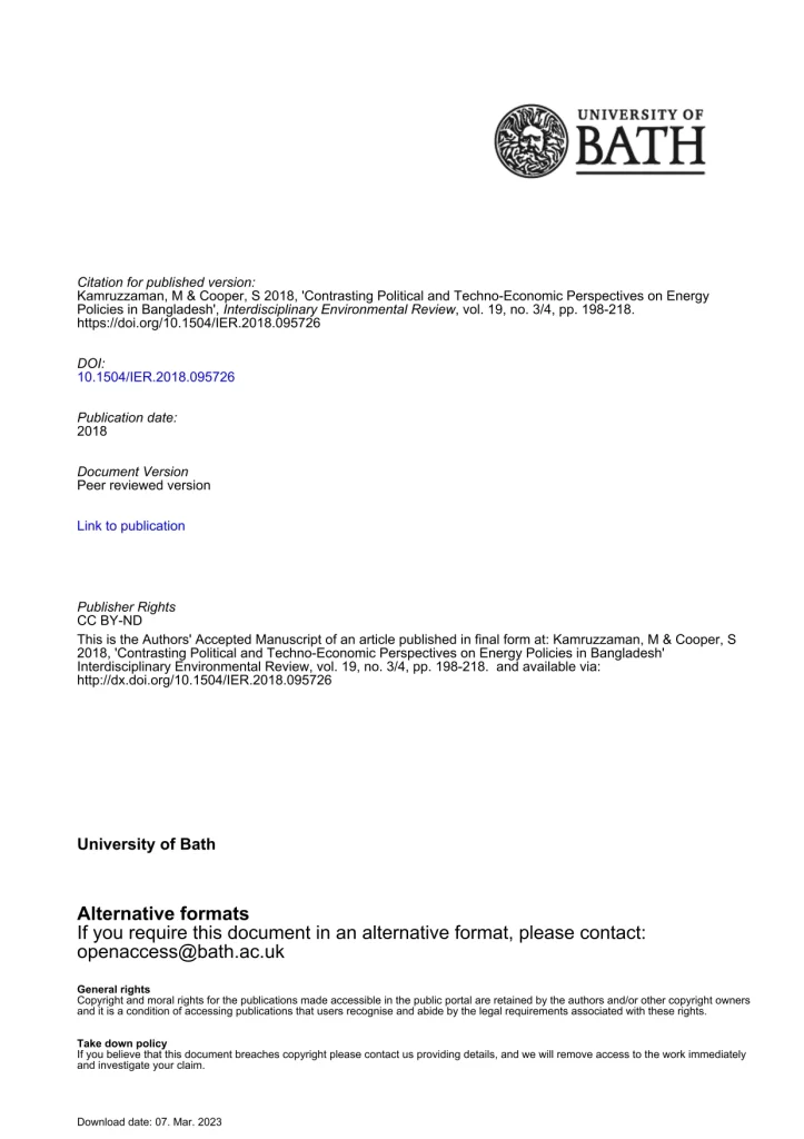 Contrasting Political And Techno-Economic Perspectives On Energy Development In Bangladesh