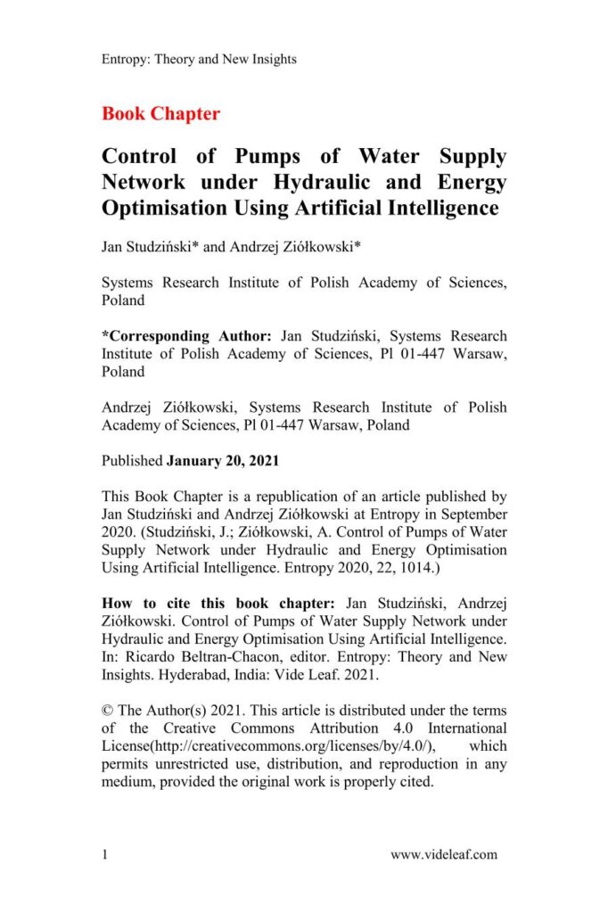 Control of Pumps of Water Supply Network under Hydraulic and Energy Optimisation Using Artificial Intelligence