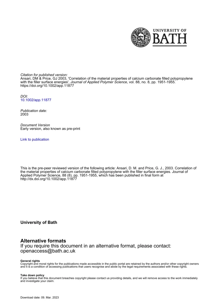 Correlation Of Material Properties Of Calcium Carbonate Filled Polypropylene With The Filler Surface Energies