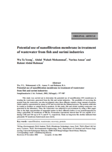 Potential Use of Nanofiltration Membrane in Treatment of Wastewater from Fish and Surimi Industries 2 0