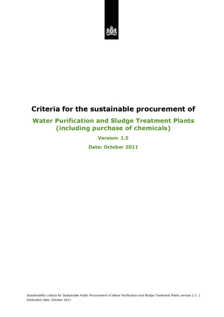 Criteria For The Sustainable Procurement of Water Purification and Sludge Treatment Plants (including purchase of chemicals)