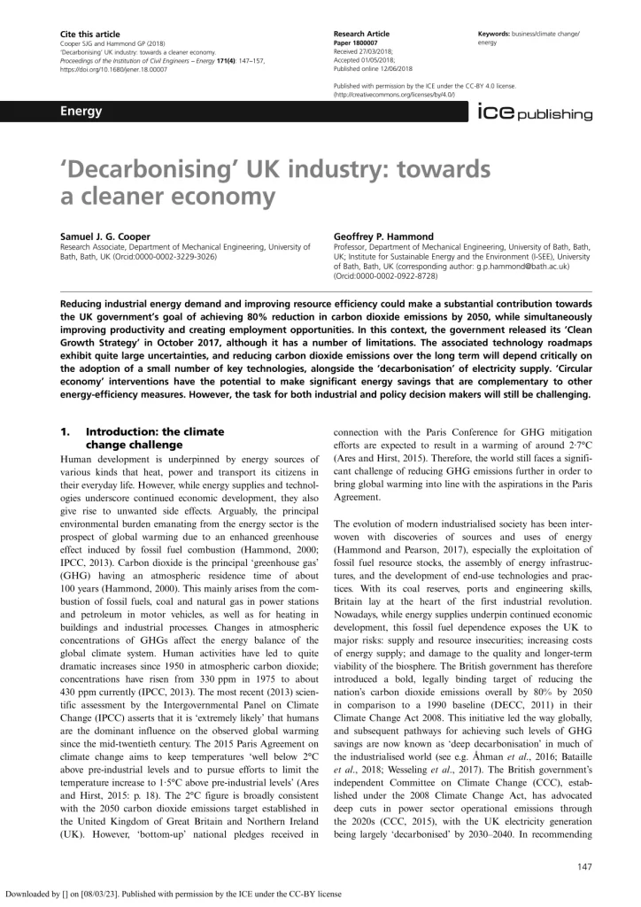 Digital Book ‘Decarbonising’ UK Industry Towards A Cleaner Economy Download Book Back to library Share