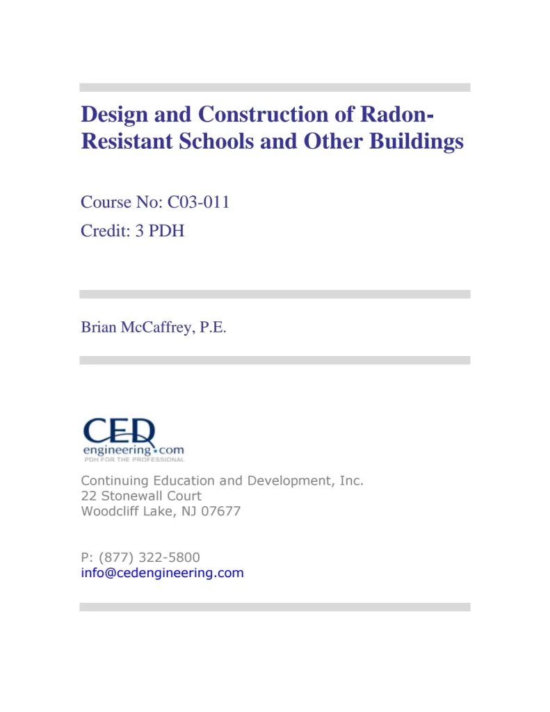 Design and Construction of Radon Resistant Schools and Other Buildings