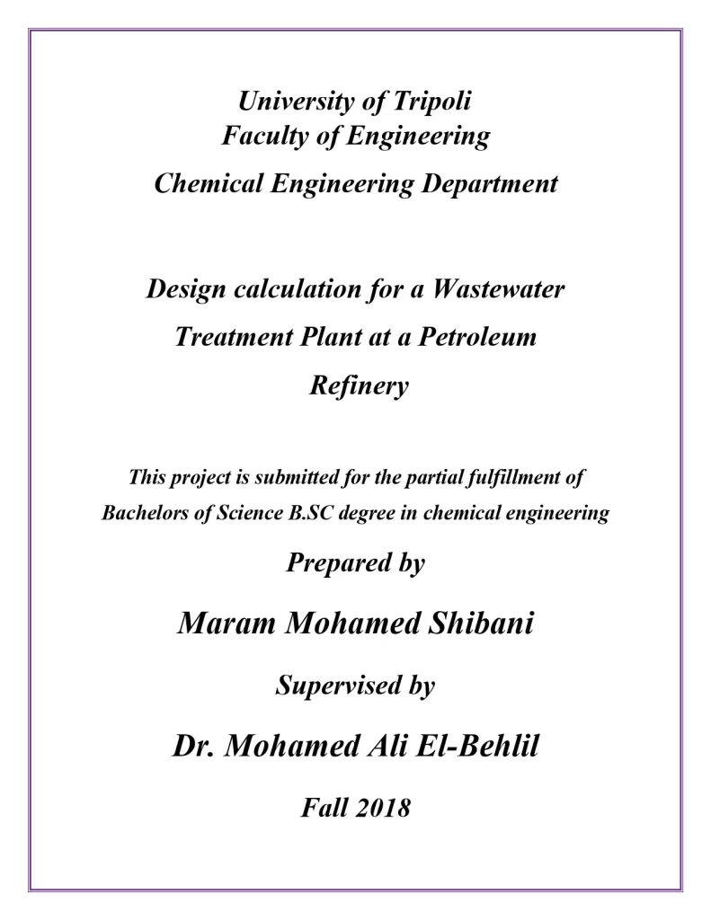 Design calculation for a Wastewater Treatment Plant at a Petroleum Refinery