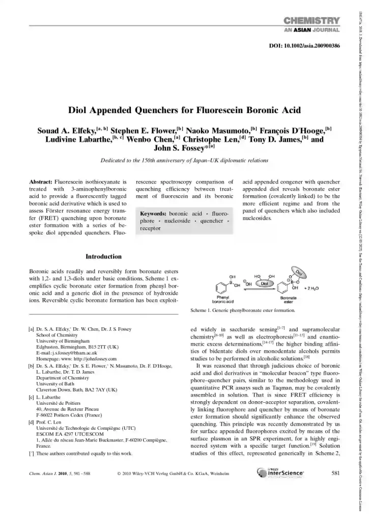 Digital Book Diol Appended Quenchers for Fluorescein Boronic Acid Download Book Back to library Share