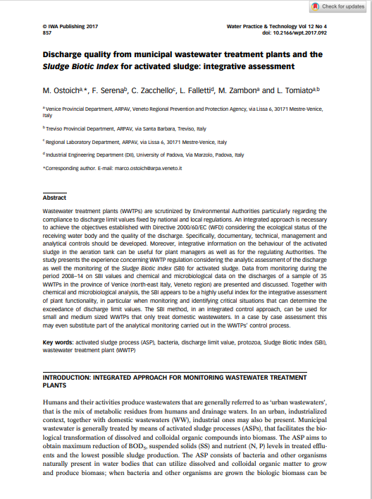 Discharge quality from municipal wastewater treatment plants and the Sludge Biotic Index for activated sludge: integrative assessment
