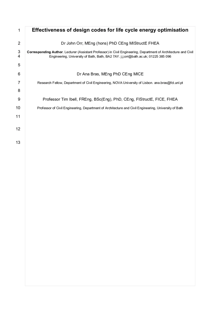 Effectiveness of Design Codes for Life Cycle Energy Optimisation