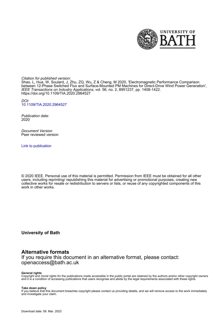 Electromagnetic Performance Comparison between 12-Phase Switched Flux and Surface-Mounted PM Machines for Direct-Drive Wind Power Generation
