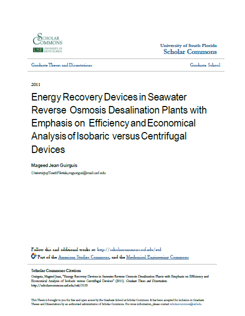 Energy Recovery Devices in Seawater Reverse Osmosis Desalination Plants with Emphasis on Efficiency and Economical Analysis of Isobaric versus Centrifugal Devices