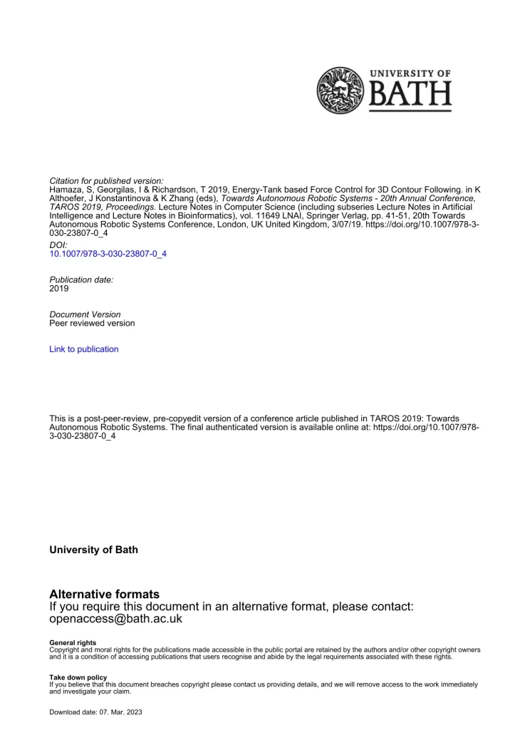 Digital Book Energy-Tank Based Force Control For 3D Contour Following Download Book Back to library Share