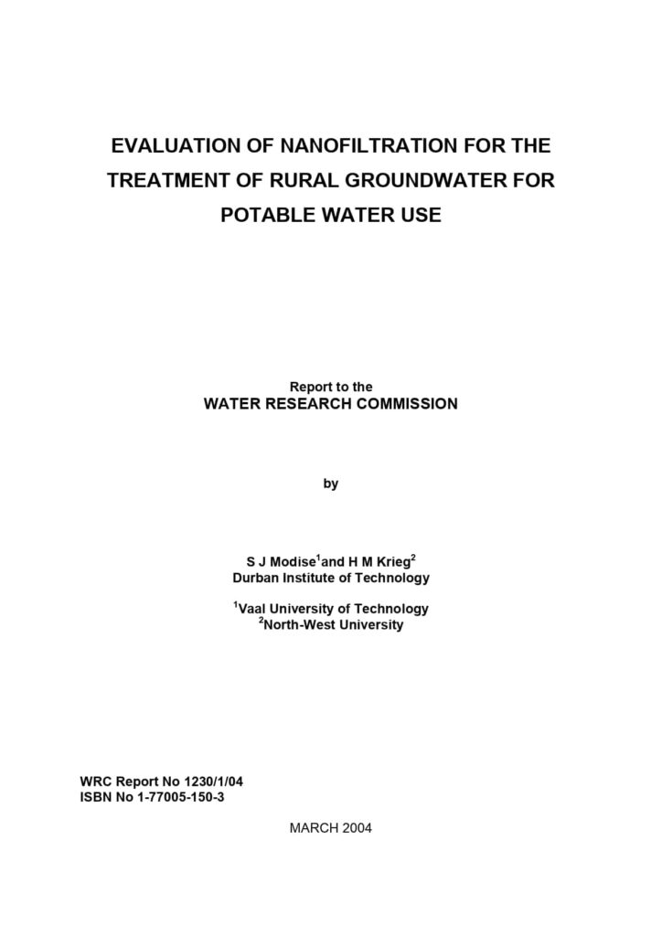 Evaluation of Nanofiltration for the Treatment of Rural Groundwater for Potable Water Use