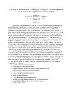 A Survey Of Sustainable Water Supplies In Virginia’s Lower Peninsula Alternatives To The King William Reservoir Project 2 0