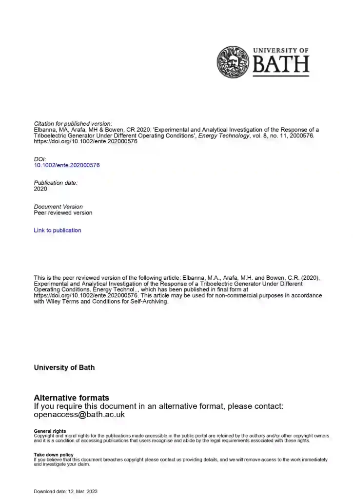 Experimental and Analytical Investigation of the Response of a Triboelectric Generator under Different Operating Conditions