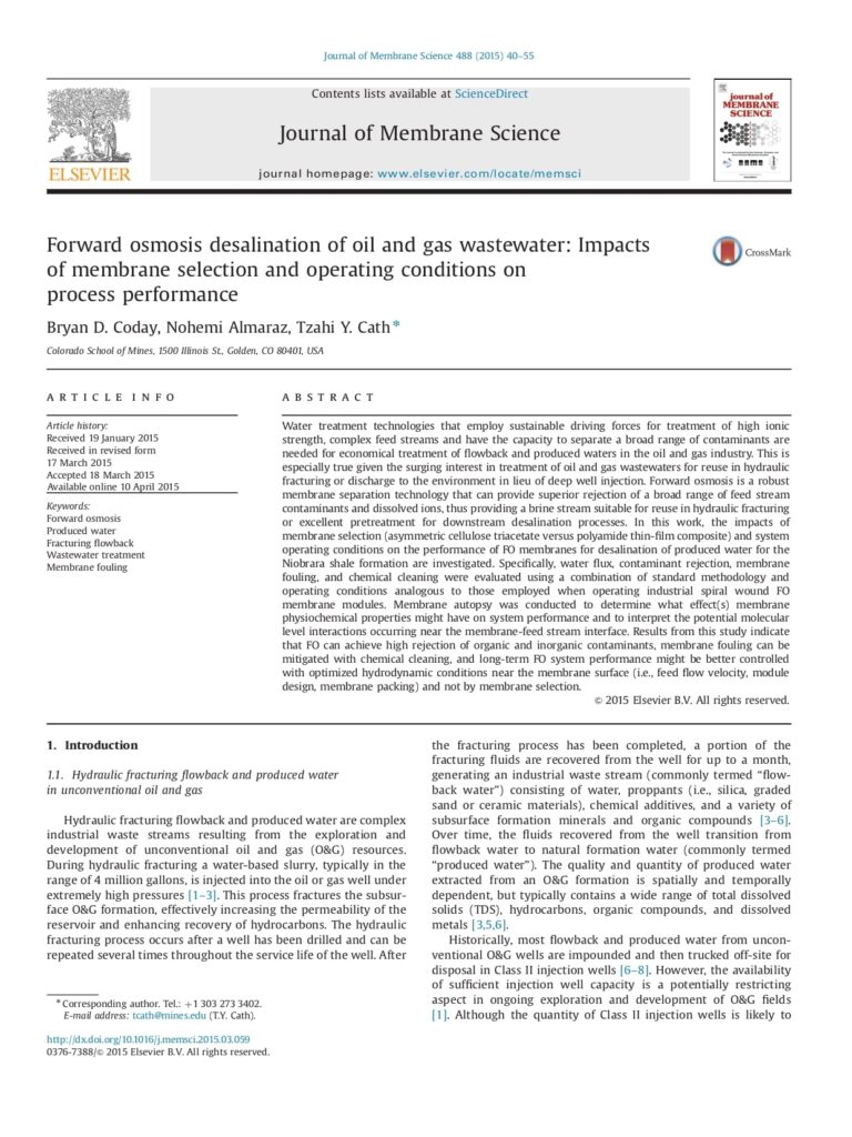 Forward Osmosis Desalination of Oil and Gas Wastewater Impacts of Membrane Selection and Operating Conditions on Process Performance