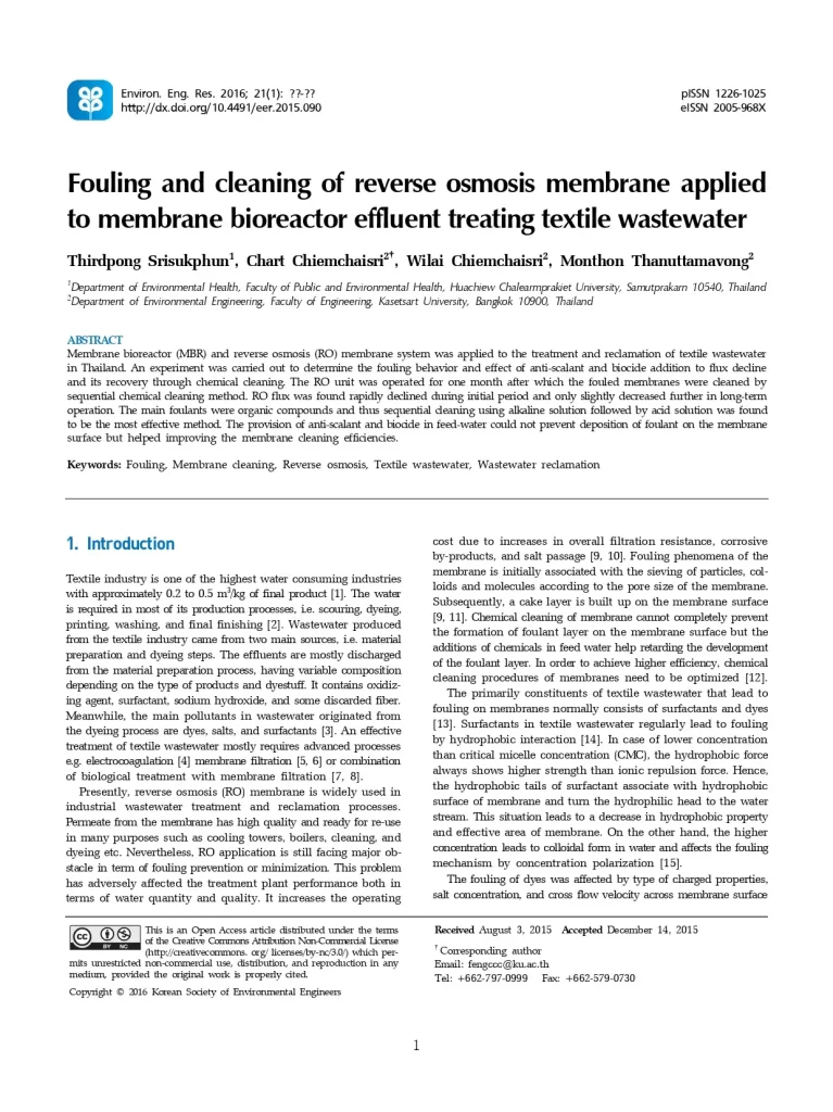 Authors:Thirdpong Srisukphun, Chart Chiemchaisri†, Wilai Chiemchaisri, Monthon Thanuttamavong